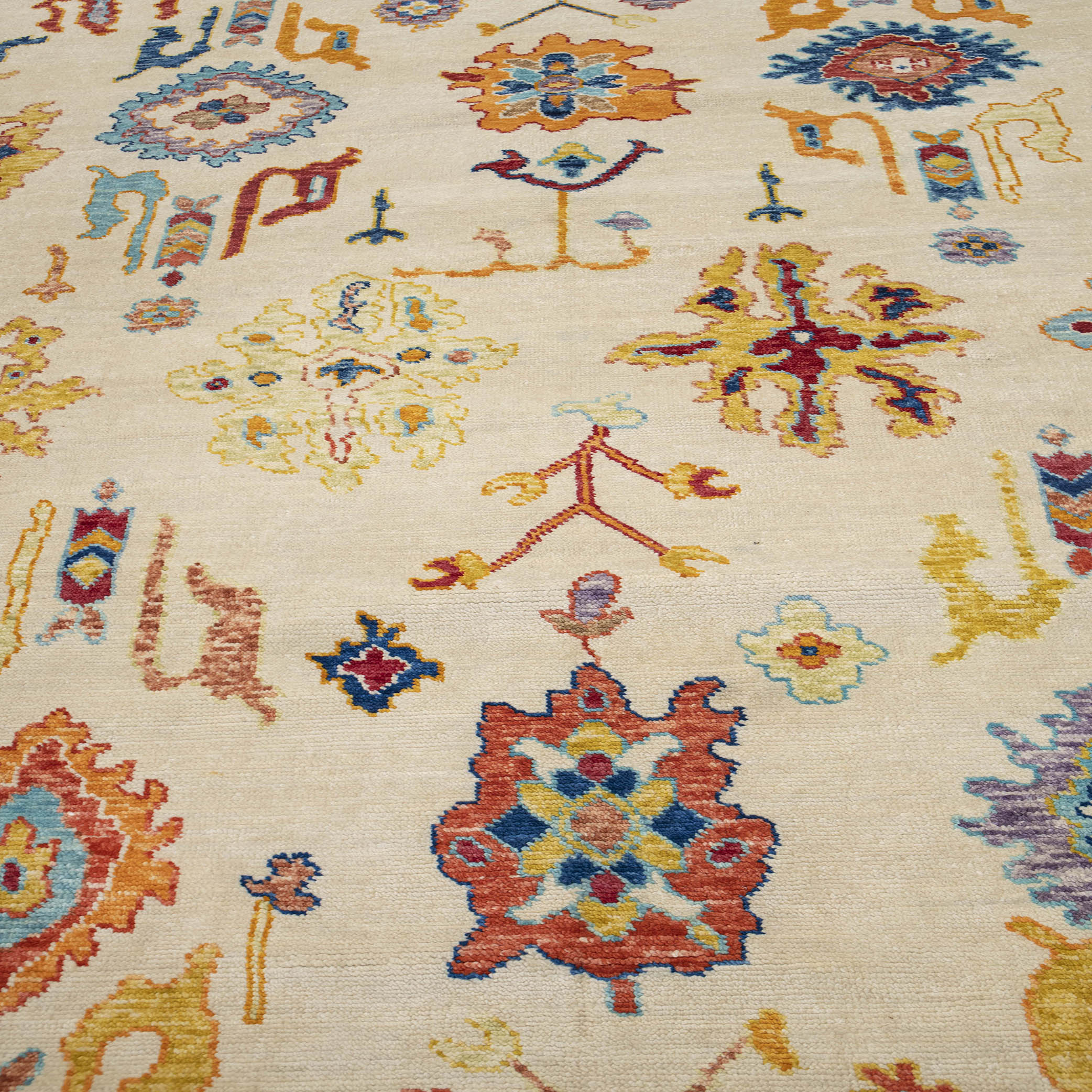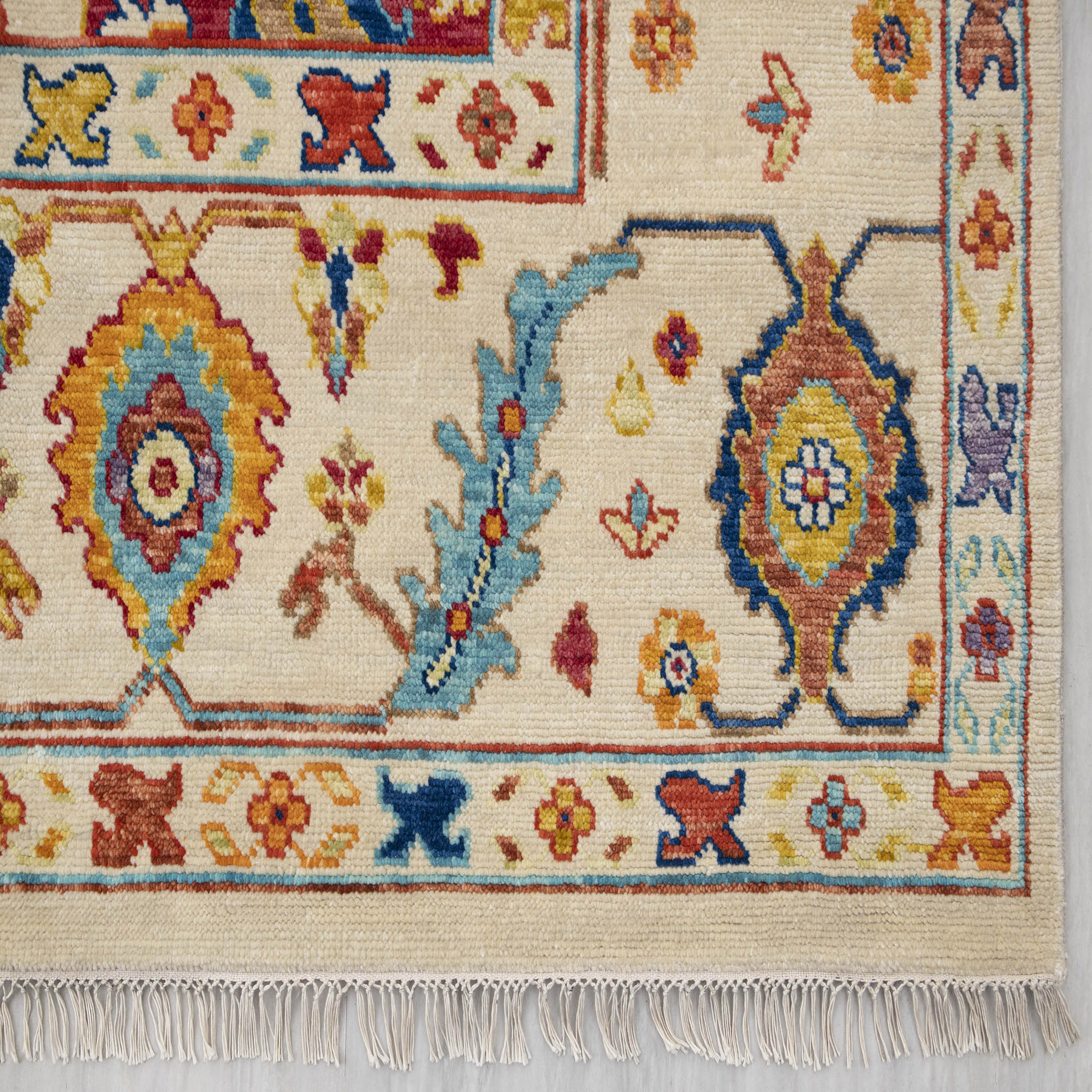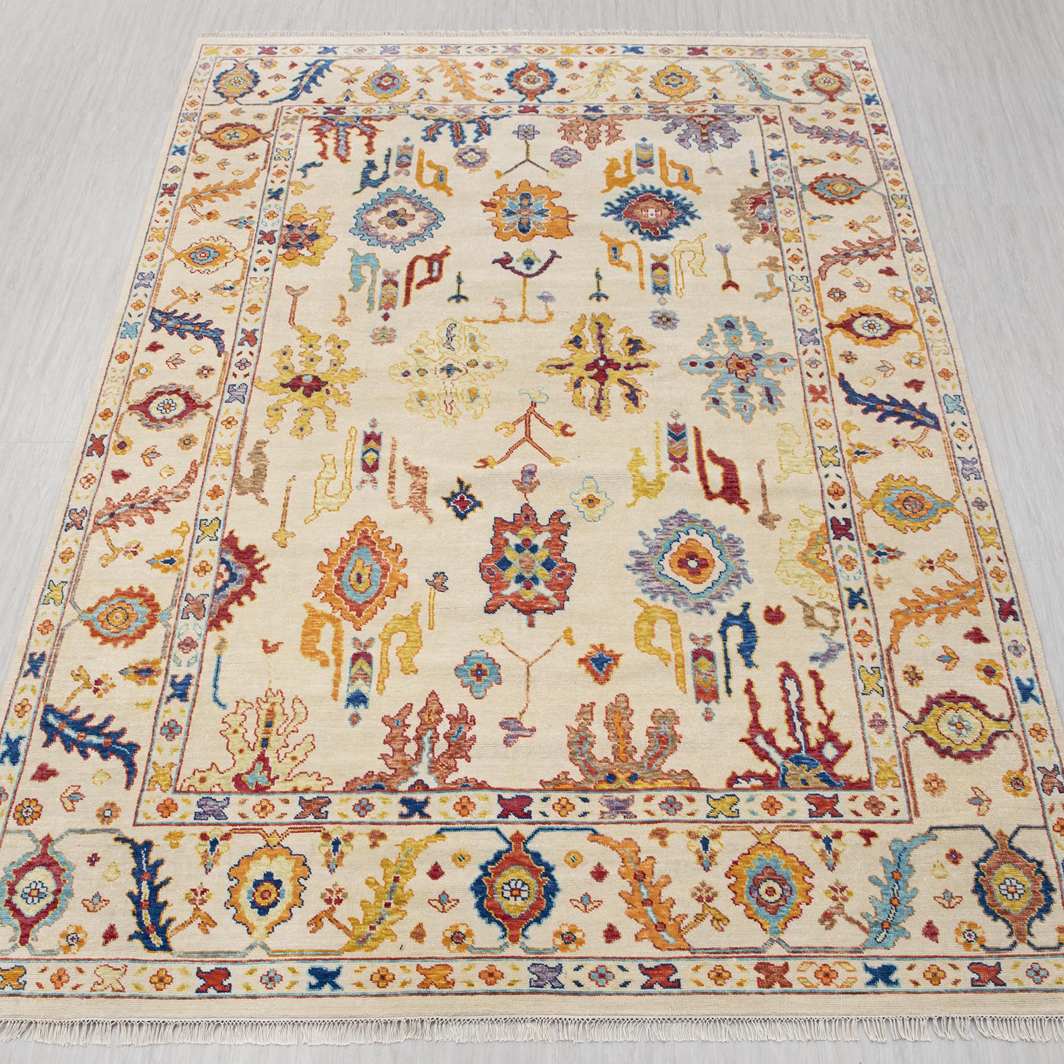 Merrakesh - 10x14 Ivory Bright Colors Soft Wool Living Room Turkish Rug