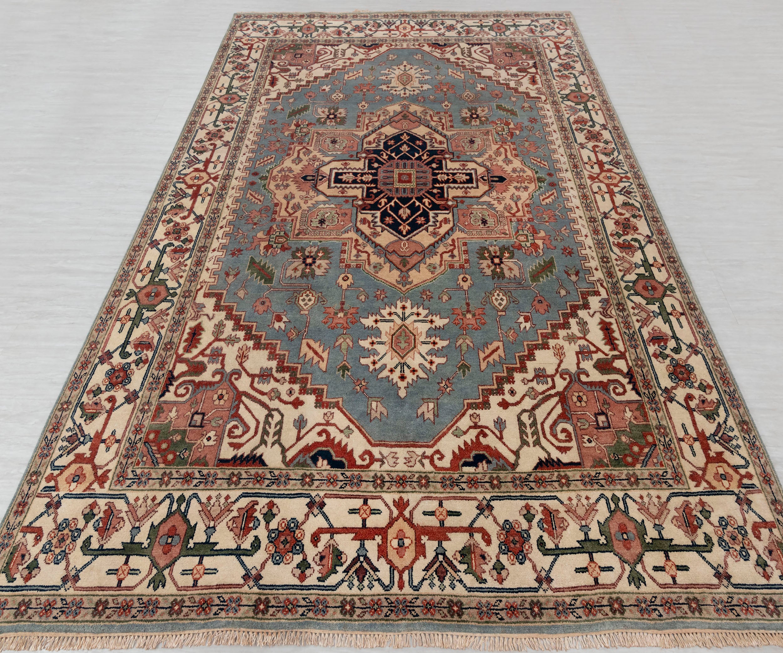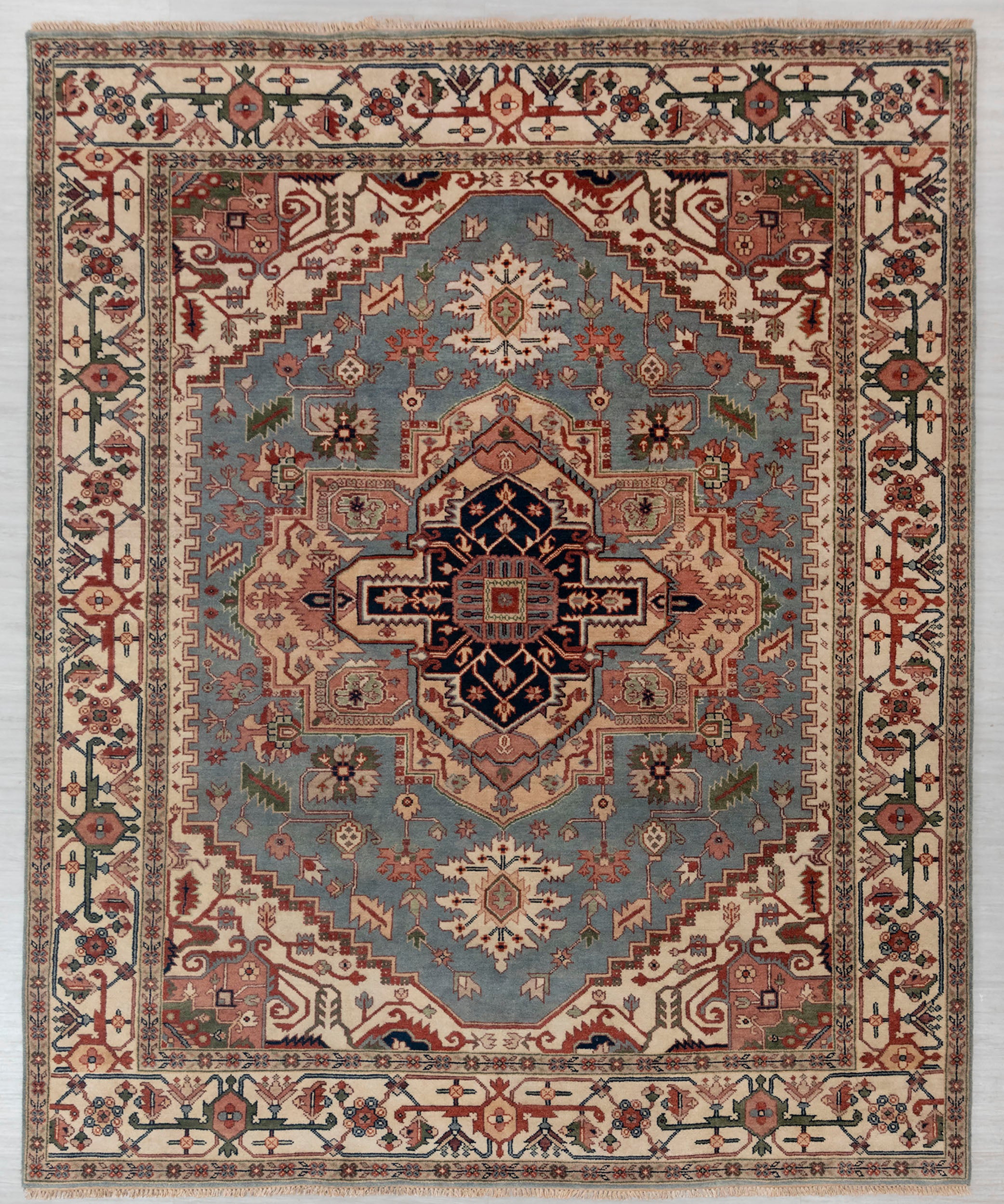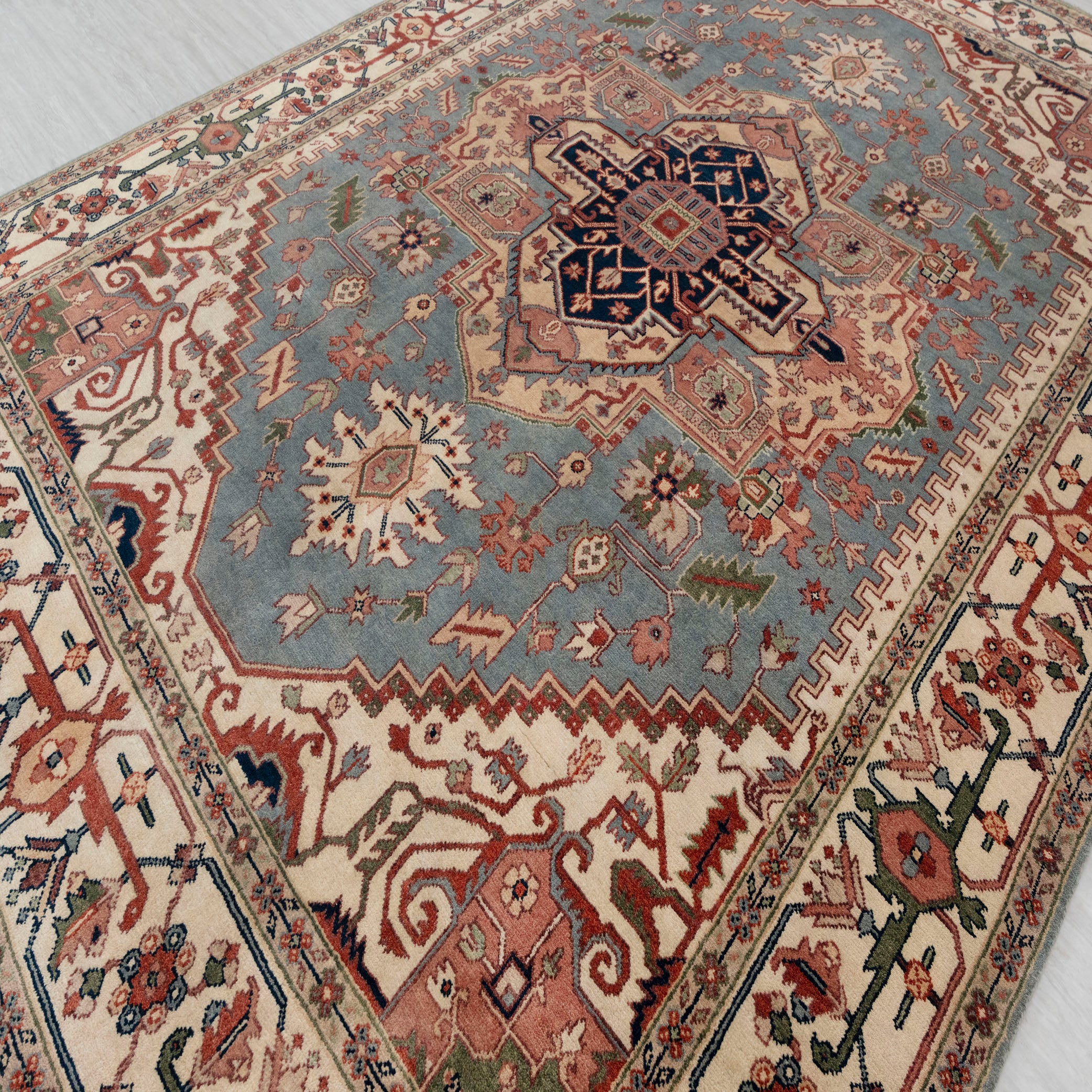 Moshari - Blue Cream Serapi Heriz Classic Persian Hand Knotted Wool Rug