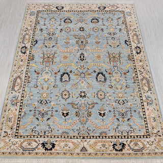 Campbell - 8x11 Blue Gray Persian Floral Inspired Fine Weave 100% Wool Rug