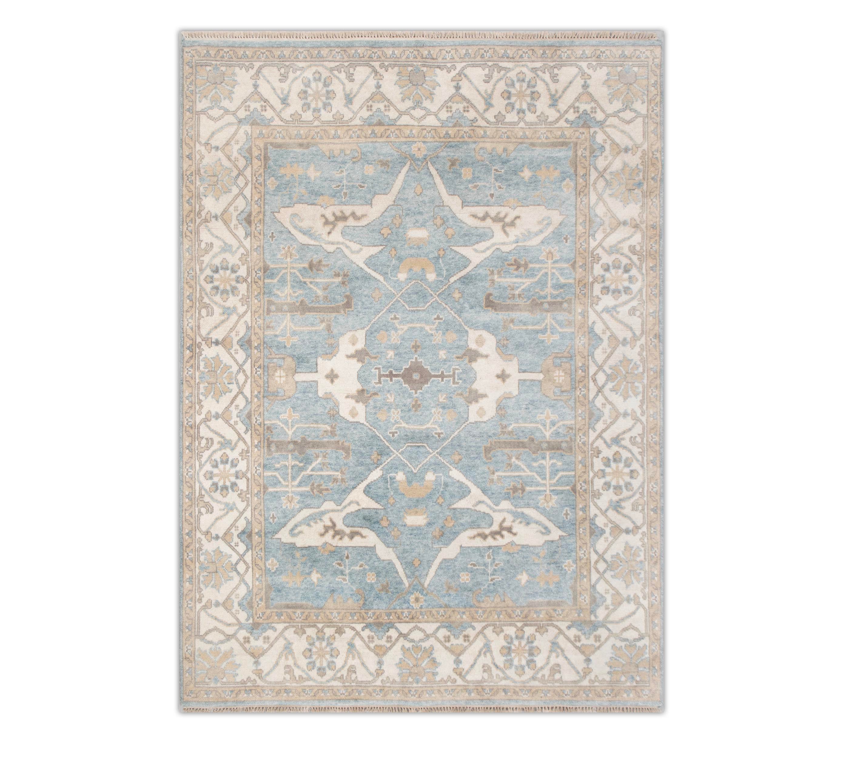 Amanda - 8x10 Muted Blue Hand Knotted Turkish Oushak Area Rug