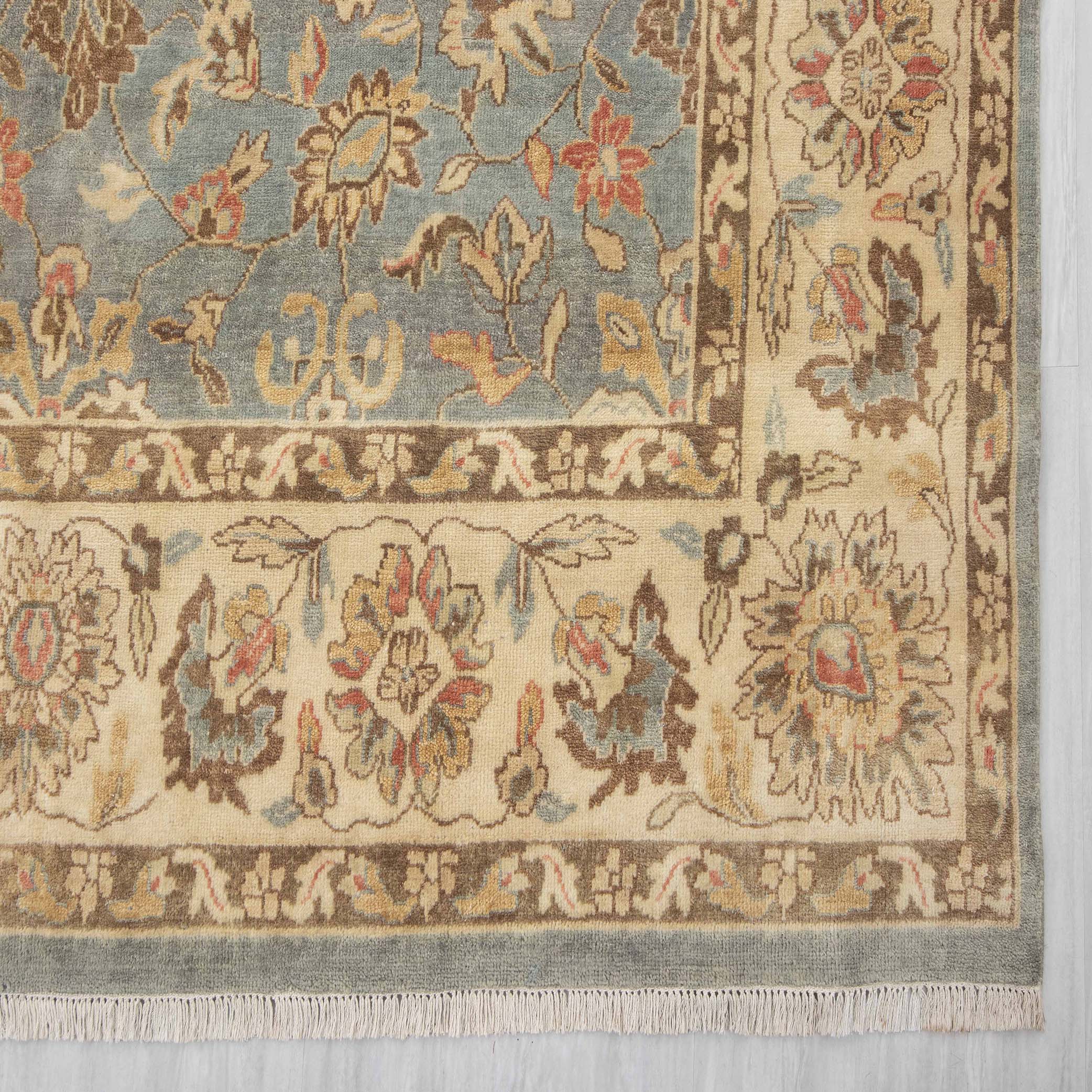 Campbell - 8x11 Blue Gray Persian Floral Inspired Fine Weave 100% Wool Rug