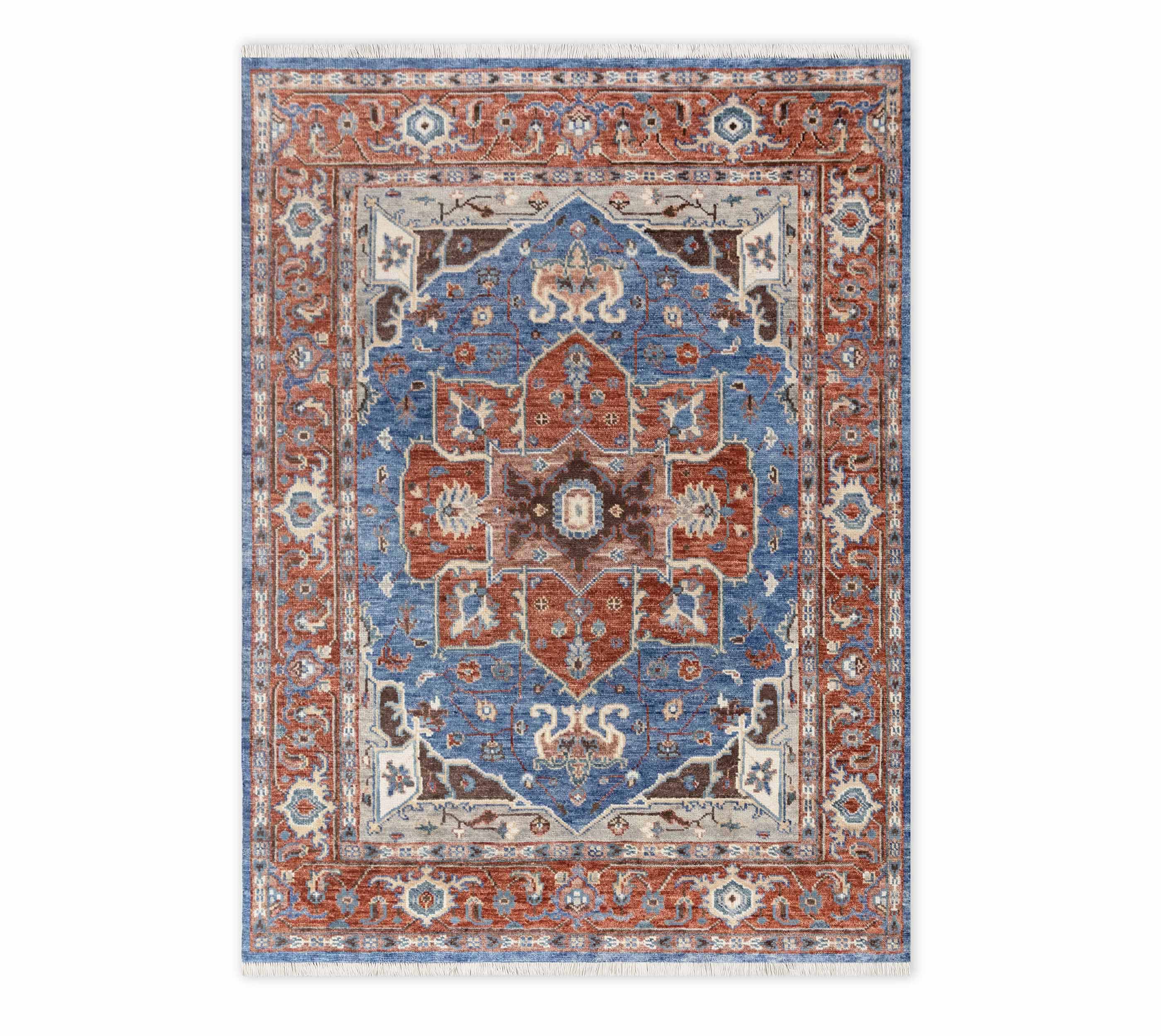 Meghan Inglis - 8x10 Handmade Red Blue Wool Persian Style Rug