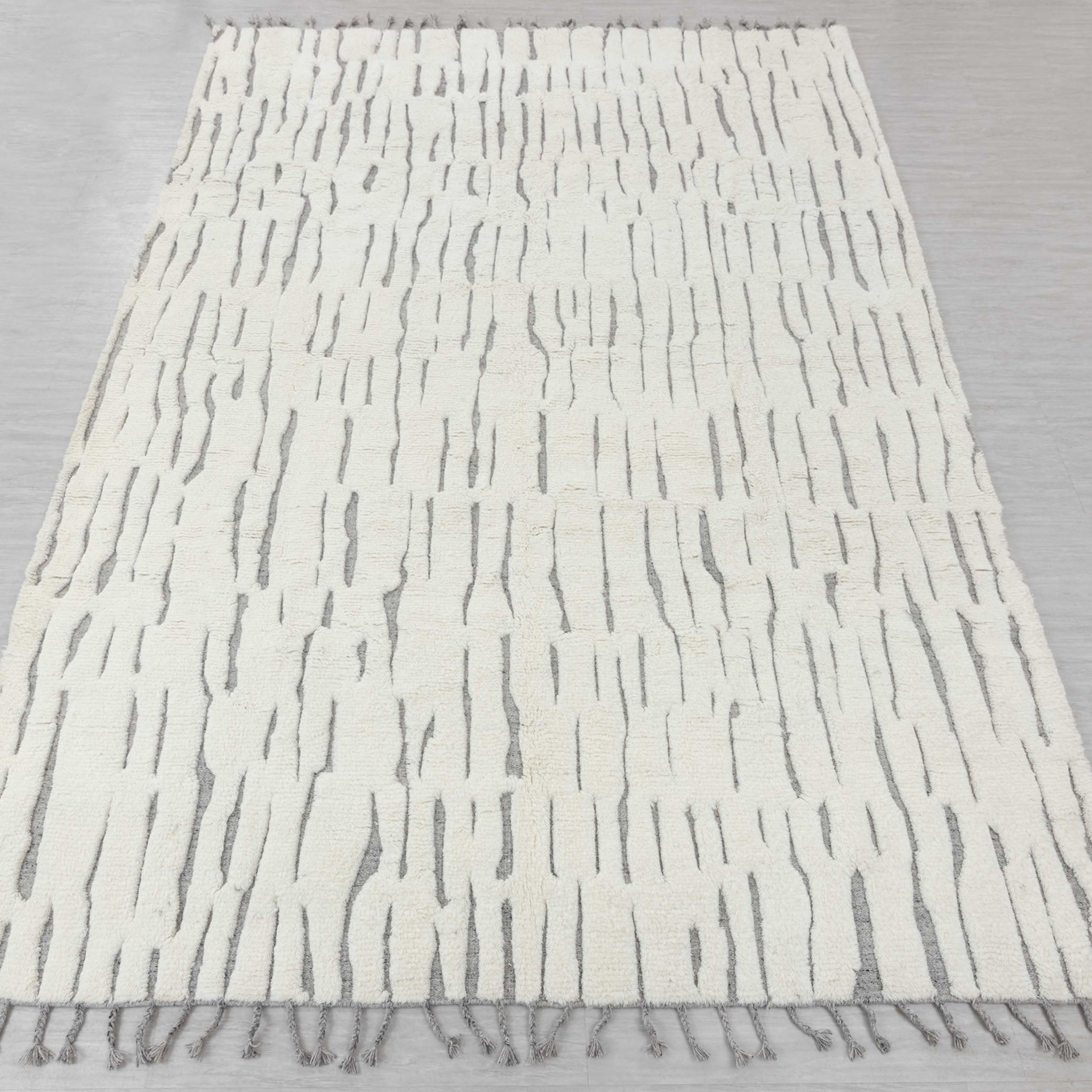 Amelia - White Grey Soft Wool Rug Moroccan Beni Ourain Hand Knotted Wool Rug