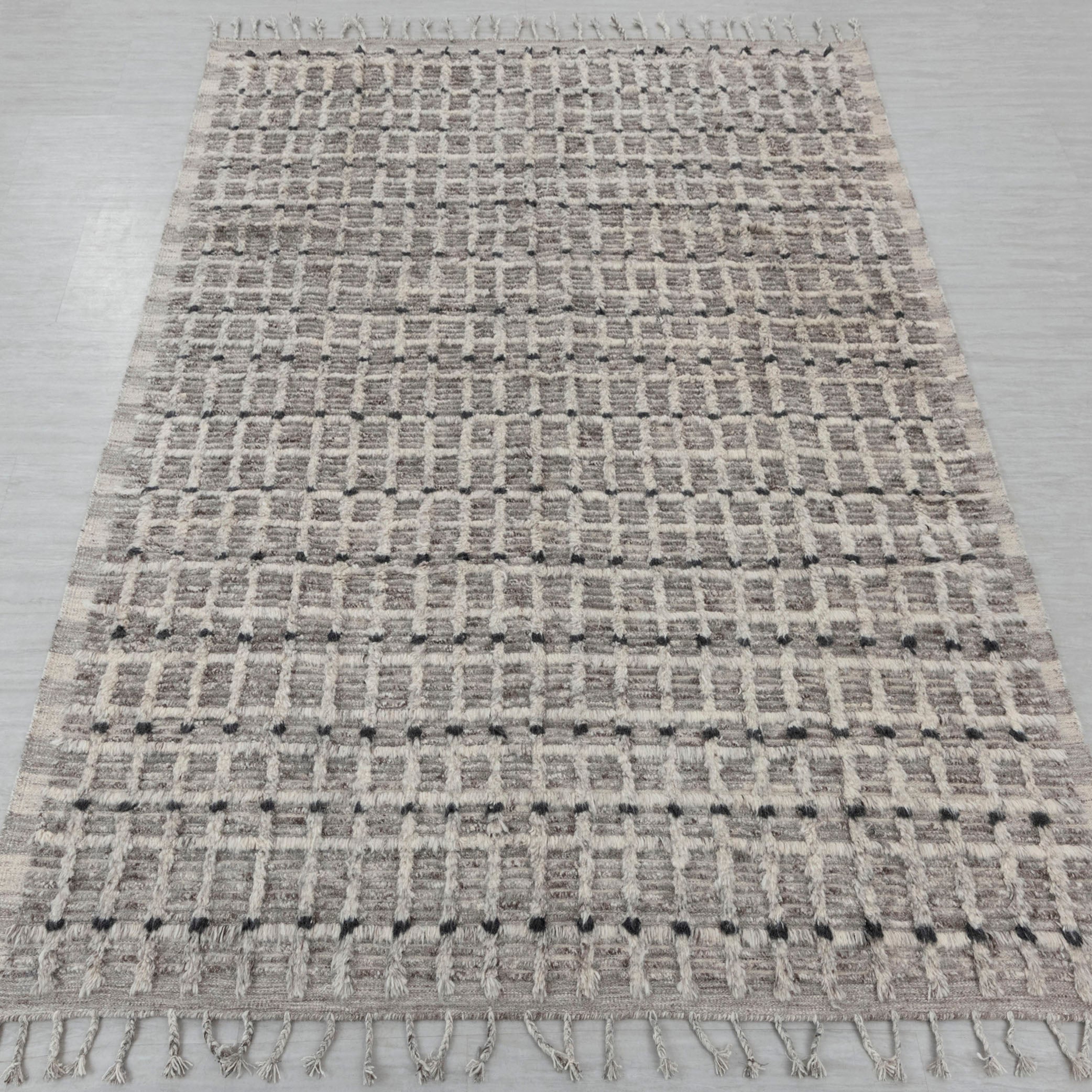 Gray Trace - Modern Moroccan Inspired Gray Natural Wool Beni Ourain Hand Knotted Rug