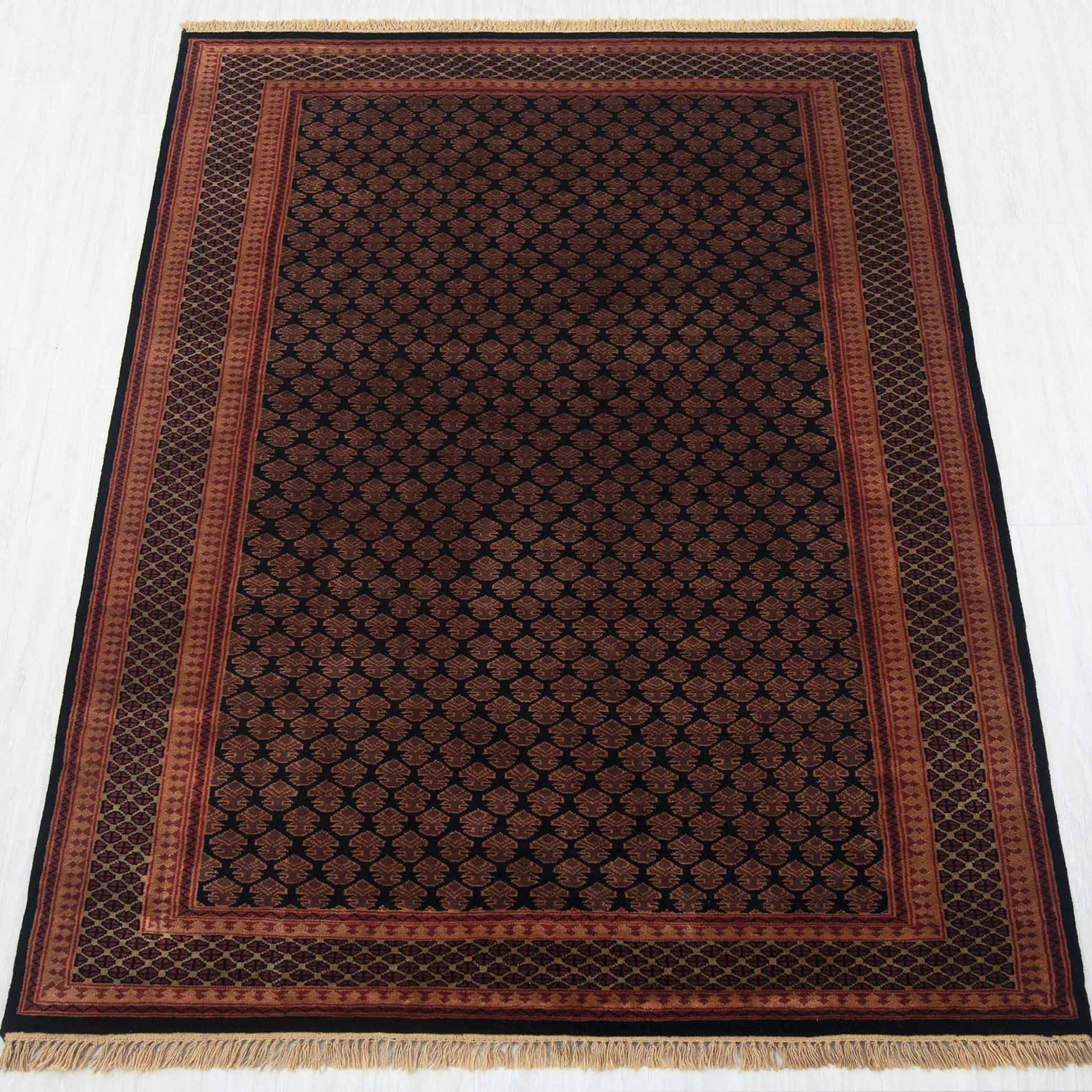 Herati - 6x9 Black Persian Senneh Fine Weave Silky Feel Wool Rug