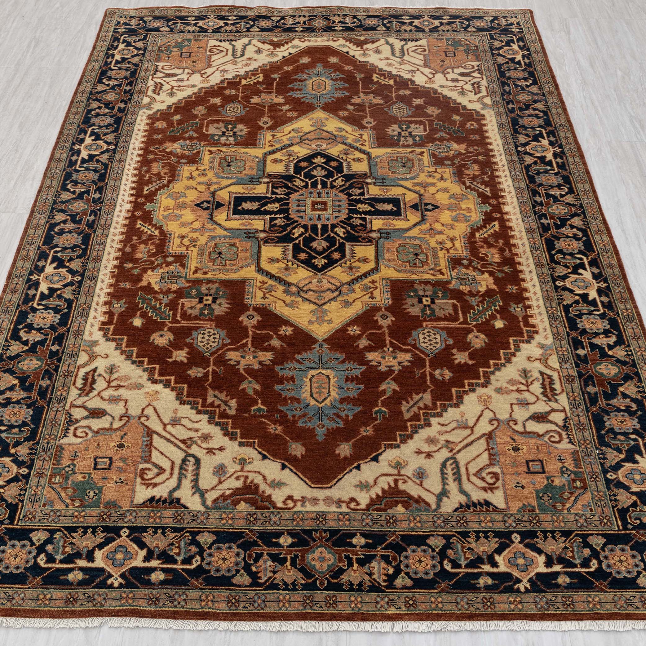 Amber - 6x9 Rust Navy Persian Mahal Serapi High KPSI Fine Wool Rug