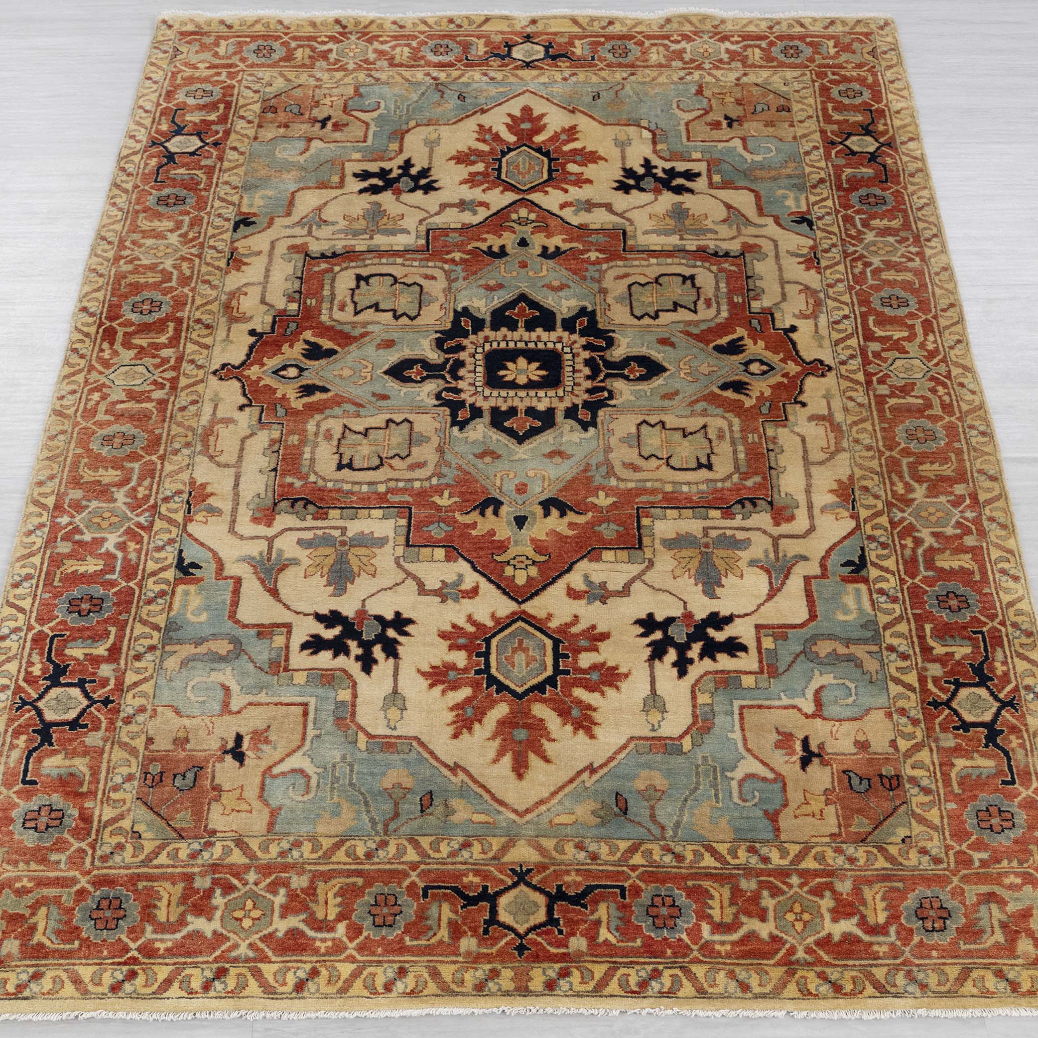 Nayan - 5x8 Classic Persian Ivory Rust Colored Fine Wool Small Area Rug