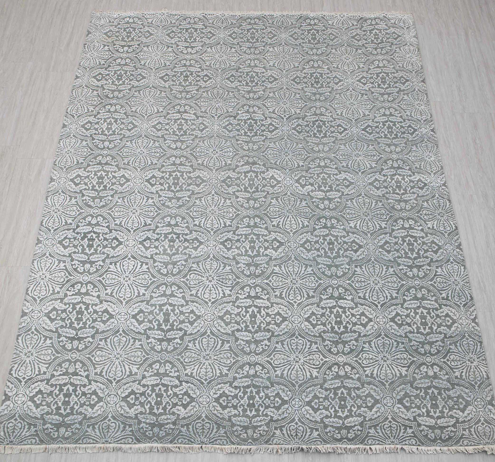 Silvara - 9x12 Modern Geometric Floral Pattern Wool & Silk Rug